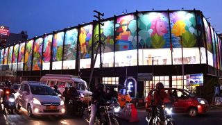 ബാനർജി റോഡിനും എംജി റോഡിനും അഭിമുഖമായാണ് സംസ്ഥാനത്തെ ഏറ്റവും വലുതെന്നു കരുതുന്ന ചിത്രം പൂർത്തിയാക്കിയത്. മുമ്പ് ഗ്രിൻഡ്ലെയ്സ് ബാങ്ക്, സെൻട്രൽ ബാങ്ക്