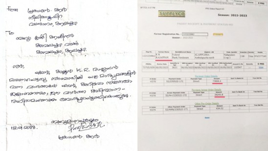 മകന് പ്രകാശന് 1944 കിലോഗ്രാം നെല്ലാണ് സപ്ലൈക്കോയ്ക്ക് നല്കിയത്. ഇതില് സംസ്ഥാന വിഹിതമെല്ലാം ഉള്പ്പടുത്തിയുള്ള 15,396 രൂപ അദ്ദേഹത്തിന്റെ രജിസ്ട്രേഷനില് രേഖപ്പെടുത്തിയ അക്കൗണ്ടിലേക്ക് നല്കിയിട്ടുണ്ട്. ബാക്കിയുള്ള 39,658 രൂപ ലോണ് പ്രോസസ് ചെയ്തു കഴിഞ്ഞതായും ഇത് അക്കൗണ്ടില് ക്രെഡിറ്റ് ആയെന്ന് ബാങ്ക് അധികൃതര് അറിയിച്ചതായും പാഡി ഓഫീസര് പറഞ്ഞു.