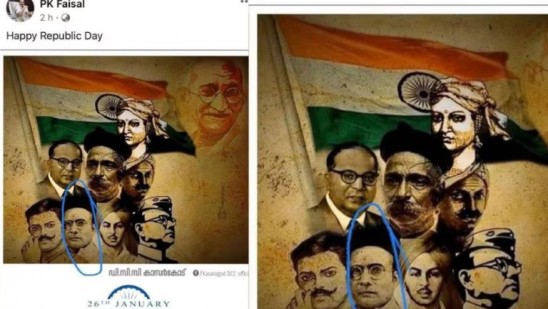 കാസർകോട് > ഡിസിസി പ്രസിഡന്റ് പി കെ ഫൈസലിന്റെ റിപ്പബ്ലിക് ദിന ആശംസ പോസ്റ്റിൽ സവർക്കറും. ഫൈസല് തന്റെ ഫെയ്സ്ബുക്ക് അക്കൗണ്ടില് പങ്കുവച്ചചിത്രമാണ് വിവാദമായിരിക്കുന്നത്. ആശംസ പോസ്റ്റില് ബി ആര് അംബേദ്കര്, ഭഗത് സിങ്, സുഭാഷ് ചന്ദ്രബോസ് എന്നിവര്ക്കൊപ്പമാണ് സവര്ക്കറുടെ ചിത്രം ഉള്പ്പെടുത്തിയിരുന്നത്.