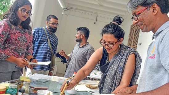 കുട്ടികളും മുതിർന്നവരും ഉൾപ്പെടെ 22 പേരാണ് ശിൽപ്പശാലയിൽ പങ്കെടുക്കാൻ എത്തിയത്. ജലച്ചായ പ്രകൃതിവർണങ്ങൾ ഉപയോഗിച്ചാണ് രചന. വർണങ്ങളുടെ തിളക്കത്തിനും നീണ്ടകാലത്തെ നിലനിൽപ്പിനും വഴക്കത്തിനും മുട്ടയുടെ വെള്ള, തുരിശ് എന്നിവ ചേർക്കും. മുട്ടയുടെ മഞ്ഞ ഉപയോഗിക്കുന്ന എഗ് ടെമ്പറ, കെസിൻ ടെമ്പറ എന്നീ വിദേശസങ്കേതങ്ങളും പ്രചാരത്തിലുണ്ട്. സാംസ്കാരികവകുപ്പും ലളിതകലാ അക്കാദമിയും ചേർന്നാണ് ശിൽപ്പശാല സംഘടിപ്പിക്കുന്നത്. ഞായറാഴ്ച സമാപിക്കും. പങ്കെടുത്തവർക്ക് സർട്ടിഫിക്കറ്റുകളും നൽകും.