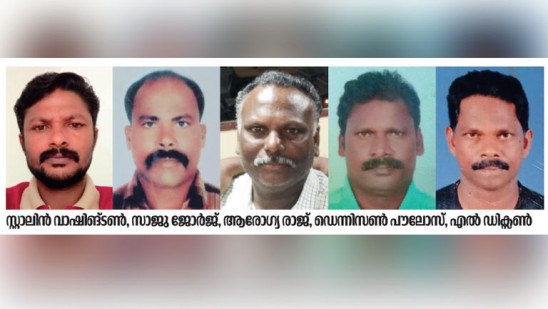 അഞ്ചുതെങ്ങ് മാമ്പള്ളി നെടിയവിളാകം സ്വദേശി സാജു ജോർജ് (54), മാമ്പള്ളി ആരോഗ്യ രാജ് (43), ഓലുവിളാകം ഡെന്നിസൺ പൗലോസ് (48), കായിക്കര കുളങ്ങര പടിഞ്ഞാറിൽ സ്റ്റാലിൻ വാഷിങ്ടൺ (44), മാമ്പള്ളി പുതുമണൽ പുരയിടത്തിൽ എൽ ഡിക്സൺ (46) എന്നിവരും കൊല്ലം പരവൂർ സ്വദേശികളായ ഷമീർ, ഷാഹുൽ ഹമീദ്, തമിഴ്നാട് സ്വദേശികളായ മൂന്നുപേരുമടക്കം 11 പേരെയാണ് വിട്ടയച്ചത്.