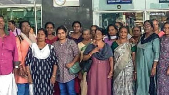 നെടുമ്പാശേരി വിമാനത്താവളത്തിലേക്കുള്ള വിമാനങ്ങള് ദിനവും കാണുന്ന ഈ തൊഴിലാളികള്ക്ക് ആകാശയാത്ര ഏറെ നാളത്തെ ആഗ്രഹമായിരുന്നു. 34 പേരാണ് ശനി പുലര്ച്ചെ സിയാലില്നിന്ന് ബംഗളൂരുവിലേക്ക് പറന്നത്. ആറുമണിയോടെ ബംഗളൂരുവിലെത്തി. പൂന്തോട്ടങ്ങളും ആര്മി മ്യൂസിയവുമെല്ലാം കണ്ടു. ഞായർ രാവിലെ ട്രെയിനിലാണ് മടക്കയാത്ര. മുന് പഞ്ചായത്ത് പ്രസിഡന്റ് ജി ഡി ഷിജു ഇടപെട്ട് ആലുവയിലെ ഒരു ട്രാവല് ഏജന്സി വഴിയാണ് വിമാന ടിക്കറ്റ് ബുക്ക് ചെയ്തത്.