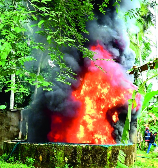 അങ്ങാടിപ്പുറം പരിയാപുരത്ത് ടാങ്കർ ലോറി അപകടത്തെ തുടർന്ന് മലിനമായ തിരുഹൃദയ മഠത്തിലെ കിണറിലെ ഡീസൽ കത്തിച്ചുകളഞ്ഞു. ബുധനാഴ്ച എഡിഎം എൻ എം മെഹറലിയുടെ അധ്യക്ഷതയിൽ ചേർന്ന ഓൺലൈൻ യോഗത്തിലാണ് ഇക്കാര്യം തീരുമാനിച്ചത്. സാന്നിധ്യം കണ്ടെത്തിയ ആറ് കിണറുകളിലെയും ഡീസൽ വ്യാഴാഴ്ച കത്തിച്ചുകളയാനായിരുന്നു തീരുമാനം. എന്നാൽ, മഠത്തിലെ കിണറിൽമാത്രമാണ് കത്തിച്ചുകളയാൻ തക്കവിധത്തിലുള്ള ഡീസൽ സാന്നിധ്യമുണ്ടായിരുന്നത്. പെരിന്തൽമണ്ണ തഹസിൽദാർ ഇൻ ചാർജ് പി രാജഗോപാലൻ, അങ്ങാടിപ്പുറം പഞ്ചായത്ത് സെക്രട്ടറി അജയ്കുമാർ, അഗ്നിരക്ഷാസേന, സിവിൽ ഡിഫൻസ് അംഗങ്ങൾ എന്നിവരുടെ മേൽനോട്ടത്തിലാണ് ഡീസൽ കത്തിച്ചത്. തീ ആളിക്കത്തി സമീപത്തെ തെങ്ങിലേക്ക് പടർന്നു. ഇത് അഗ്നിരക്ഷാസേന വെള്ളം ചീറ്റി അണച്ചു. മഴ ശമിക്കുന്ന മുറയ്ക്ക് ഡീസൽ കലർന്ന ജലം നീക്കംചെയ്യുന്ന പ്രവൃത്തി തുടരുമെന്ന് അധികൃതർ പറഞ്ഞു.