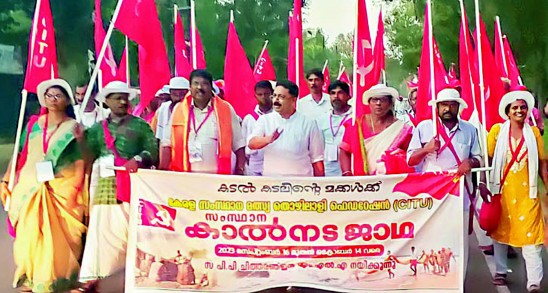 ‘കടൽ കടലിന്റെ മക്കൾക്ക്’ മുദ്രാവാക്യമുയർത്തി ഒക്ടോബർ 16ന് സംഘടിപ്പിക്കുന്ന കടൽ സംരക്ഷണ ശൃംഖലയുടെ പ്രചാരണാർഥമുള്ള മത്സ്യത്തൊഴിലാളി ഫെഡറേഷൻ (സിഐടിയു) സംസ്ഥാന കാൽനട ജാഥ മലപ്പുറത്തിന്റെ തീരദേശത്തുകൂടിയുള്ള പര്യടനം തുടരുന്നു. ഫെഡറേഷൻ ജനറൽ സെക്രട്ടറിയും ജാഥാ ക്യാപ്റ്റനുമായ പി പി ചിത്തരഞ്ജൻ നയിക്കുന്ന ജാഥ തിങ്കളാഴ്ച പുതിയ കടപ്പുറത്തുനിന്നാണ് പര്യടനം തുടങ്ങിയത്.