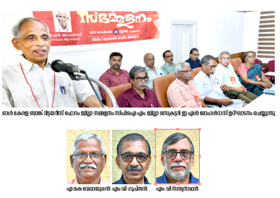 വിരമിച്ച ബാങ്ക് ജീവനക്കാരുടെ പെൻഷൻ പരിഷ്കരിക്കണമെന്ന് ഓൾ കേരള ബാങ്ക് റിട്ടയറീസ് ഫോറം ജില്ലാ സമ്മളനം ഇന്ത്യൻ ബാങ്ക്സ് അസോസിയേഷനോടും കേന്ദ്ര സർക്കാരിനോടും ആവശ്യപ്പെട്ടു. മലപ്പുറം ദിലീപ് മുഖർജി ഭവനിൽ നടന്ന സമ്മേളനം സിപിഐ എം ജില്ലാ സെക്രട്ടറി ഇ എൻ മോഹൻദാസ് ഉദ്ഘാടനംചെയ്തു. ജില്ലാ പ്രസിഡന്റ് എ കെ വേലായുധൻ അധ്യക്ഷനായി. എകെബിആർഎഫ് സംസ്ഥാന വൈസ് പ്രസിഡന്റ് കെ ടി ബാബു സംഘടനാ റിപ്പോർട്ടും ജില്ലാ സെക്രട്ടറി എം വി ഗുപ്തൻ പ്രവർത്തന റിപ്പോർട്ടും ട്രഷറർ ഡി വെങ്കിടേശ്വരൻ കണക്കും അവതരിപ്പിച്ചു. ബെഫി സംസ്ഥാന ജോ. സെക്രട്ടറി ബിഗേഷ് ഉണ്ണിയൻ, എകെബിആർഎഫ് സംസ്ഥാന കമ്മിറ്റി അംഗം കെ ജയകുമാർ, കെജിബി റിട്ടയറീസ് ഫോറം സംസ്ഥാന പ്രസിഡന്റ് സി ഗോവിന്ദൻകുട്ടി, എഐആർആർബിഇഎ ലീഗൽ കമ്മിറ്റി കൺവീനർ കെ ജി മദനൻ എന്നിവർ സംസാരിച്ചു. ഭാരവാഹികൾ: എ കെ വേലായുധൻ (പ്രസിഡന്റ്), എം വി ഗുപ്തൻ (സെക്രട്ടറി), എം വി സത്യനാഥൻ (ടഷറർ).
