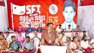 എസ്എഫ്ഐ സംസ്ഥാന സമ്മേളന നഗരിയിലേക്കുള്ള ദീപശിഖ–-പതാക ജാഥകൾക്ക് കൊരട്ടി പൊങ്ങത്ത് വരവേൽപ്പ്. എസ്എഫ്ഐ കേന്ദ്രകമ്മിറ്റി അംഗം ആദർശ് എം സജി ജാഥാ ലീഡറും സംസ്ഥാന വൈസ് പ്രസിഡന്റ് അമൽ സോഹൻ മാനേജരുമായ ദീപശിഖാ ജാഥയും എസ്എഫ്ഐ കേന്ദ്രകമ്മിറ്റി അംഗം രഹ്ന സബീന ജാഥാ ലീഡറും സംസ്ഥാന സെക്രട്ടറിയറ്റംഗം സി എസ് സംഗീത് മാനേജരുമായ പതാകജാഥയുമാണ് തൃശൂർ ജില്ലയിലേക്ക് പ്രവേശിച്ചത്. ജില്ലാ അതിർത്തിയായ പൊങ്ങത്ത് സിപിഐ എം ഏരിയ സെക്രട്ടറി കെ എസ് അശോകൻ, എസ്എഫ്ഐ ജില്ലാ സെക്രട്ടറി ഹസൻ മുബാറക്, പ്രസിഡന്റ് ജിഷ്ണു സത്യൻ, സംസ്ഥാന കമ്മിറ്റിയംഗം നിധിൻ പുല്ലൻ എന്നിവരുടെ നേതൃത്വത്തിൽ് സ്വീകരിച്ചു. സി എച്ച് അഫ്സൽ, നിർമൽ മാഞ്ഞൂരാൻ, വിഷ്ണു പ്രഭാകരൻ, വിഷ്ണു രവീന്ദ്രൻ, സാന്ദ്ര ബോസ് എന്നിവർ നേതൃത്വം നൽകി.
