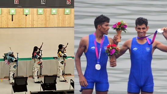 തുഴച്ചിലിലും ഇന്ത്യ വെള്ളി നേടി. ലൈറ്റ് വെയ്റ്റ് ഡബിൾ സ്കൾസിൽ അർജുൻ ലാൽ – അരവിന്ദ് സിംഗ് കൂട്ടുകെട്ടാണ് വെള്ളി നേടിയത്. 655 അംഗ ഇന്ത്യൻ സംഘമാണ് ഇത്തവണ ഗെയിംസിൽ മാറ്റുരയ്ക്കുന്നത്.